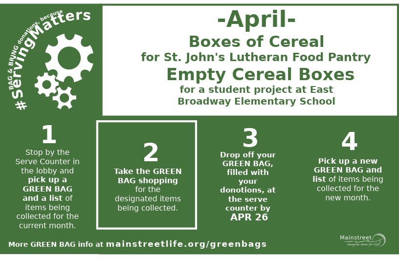 Return the filled GREEN Bags to the church by Sunday, April 26th.